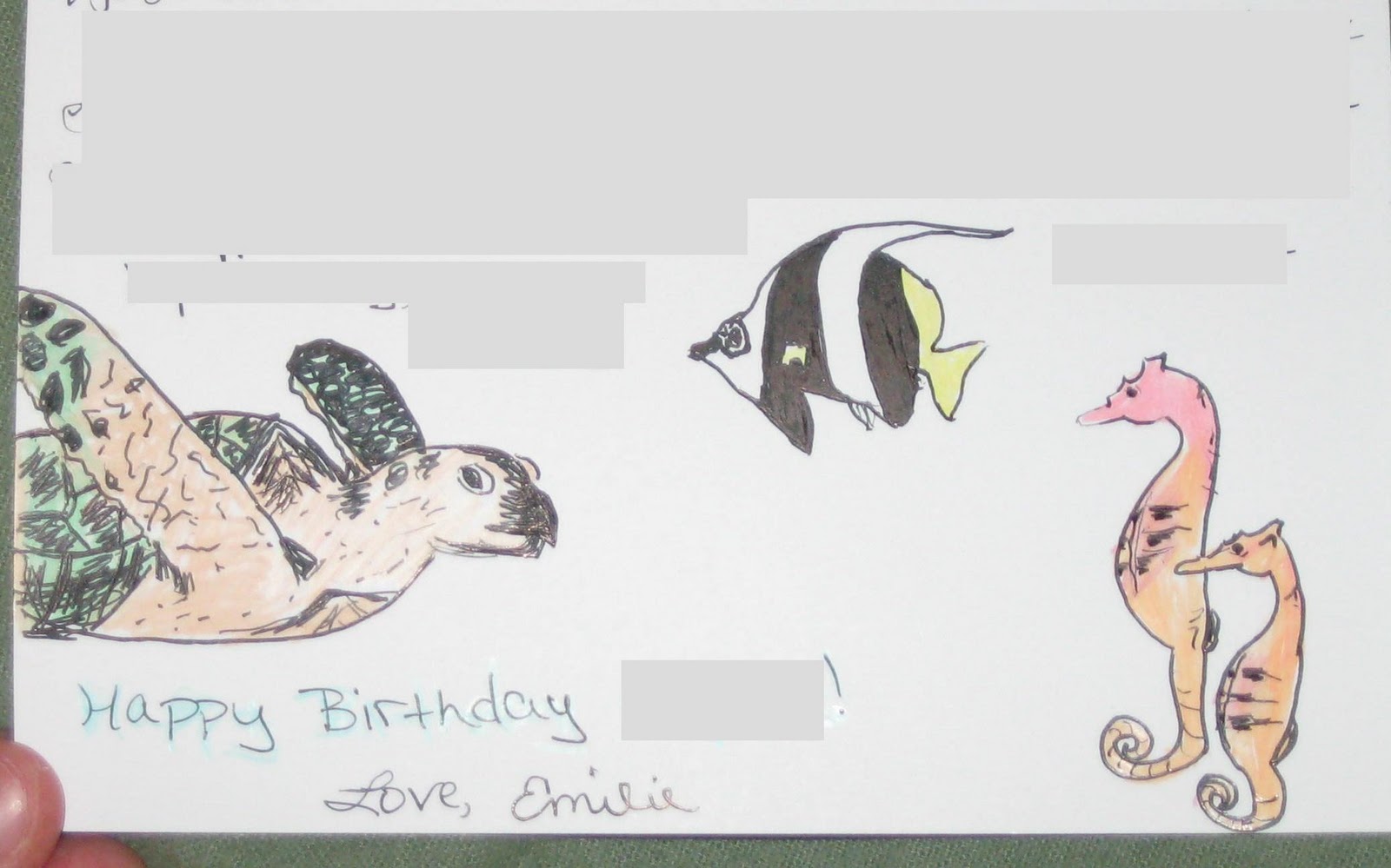 And finally, my favorite one, because my dad made it. He made this envelope out of seed packets that we bought and planted together. He sent me an article about a border collie that knows over 1,000 words!